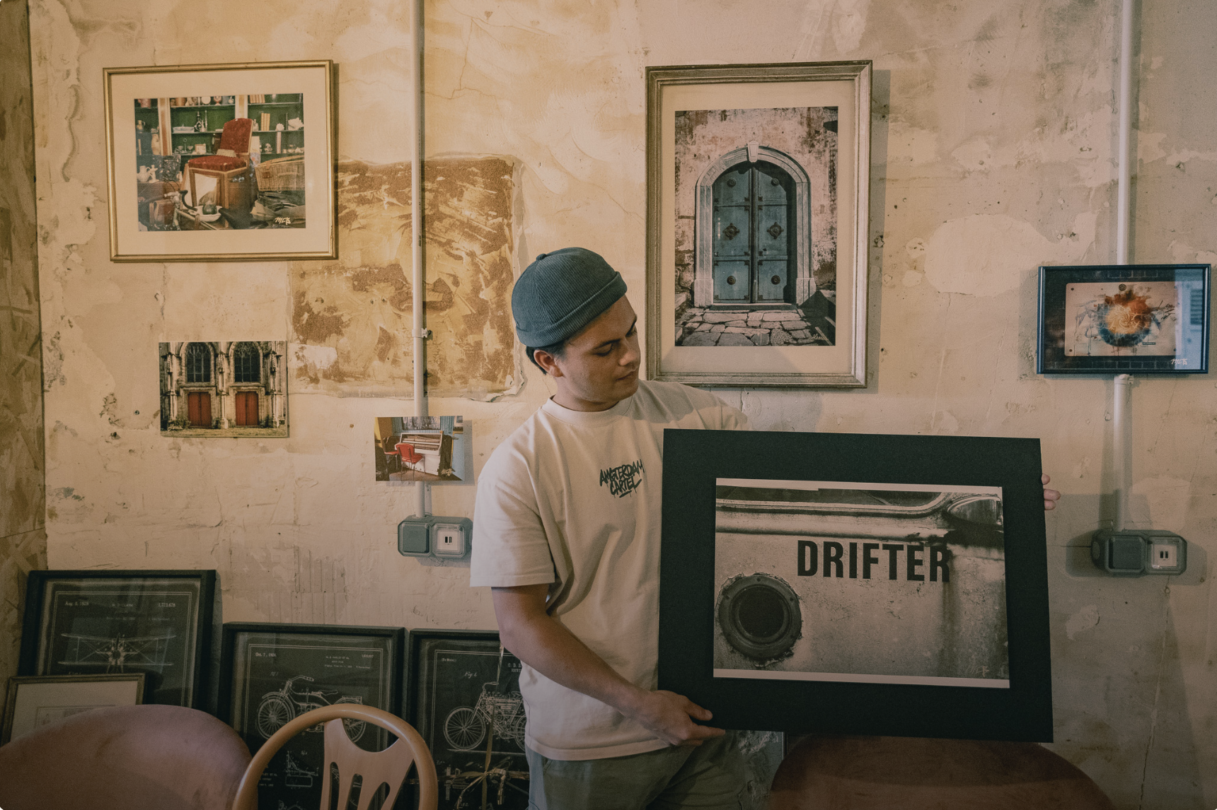 Leur rencontre remonte à Chicago, lors d’une exposition où Cameron présentait des lampes en bois. L’événement fut un succès, avec un prix, quelques ventes. Puis, comme souvent, la vie a repris son cours. Le souvenir de l’exposition s’est estompé, malgré le travail, la préparation et l’émotion qu’elle avait suscité. Quelques années plus tard, à Paris, le duo organise à son tour une exposition photo dans un café. Même constat : après la clôture, tout s’efface. Face à la brièveté de ces moments, la volonté de faire durer l’expérience artistique s’est imposée.